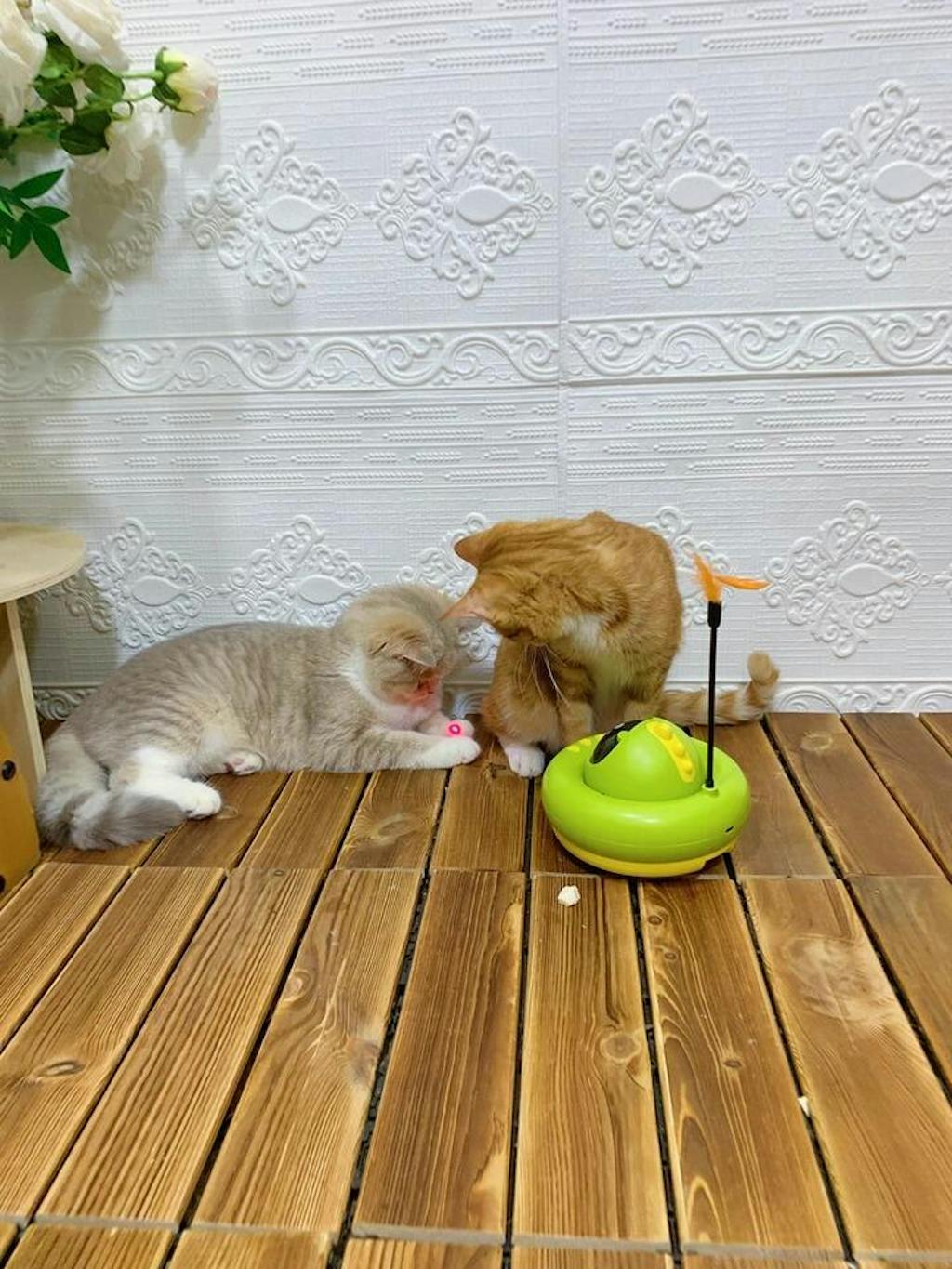 Cats playing with RC Treat-Dispensing built-in red laser