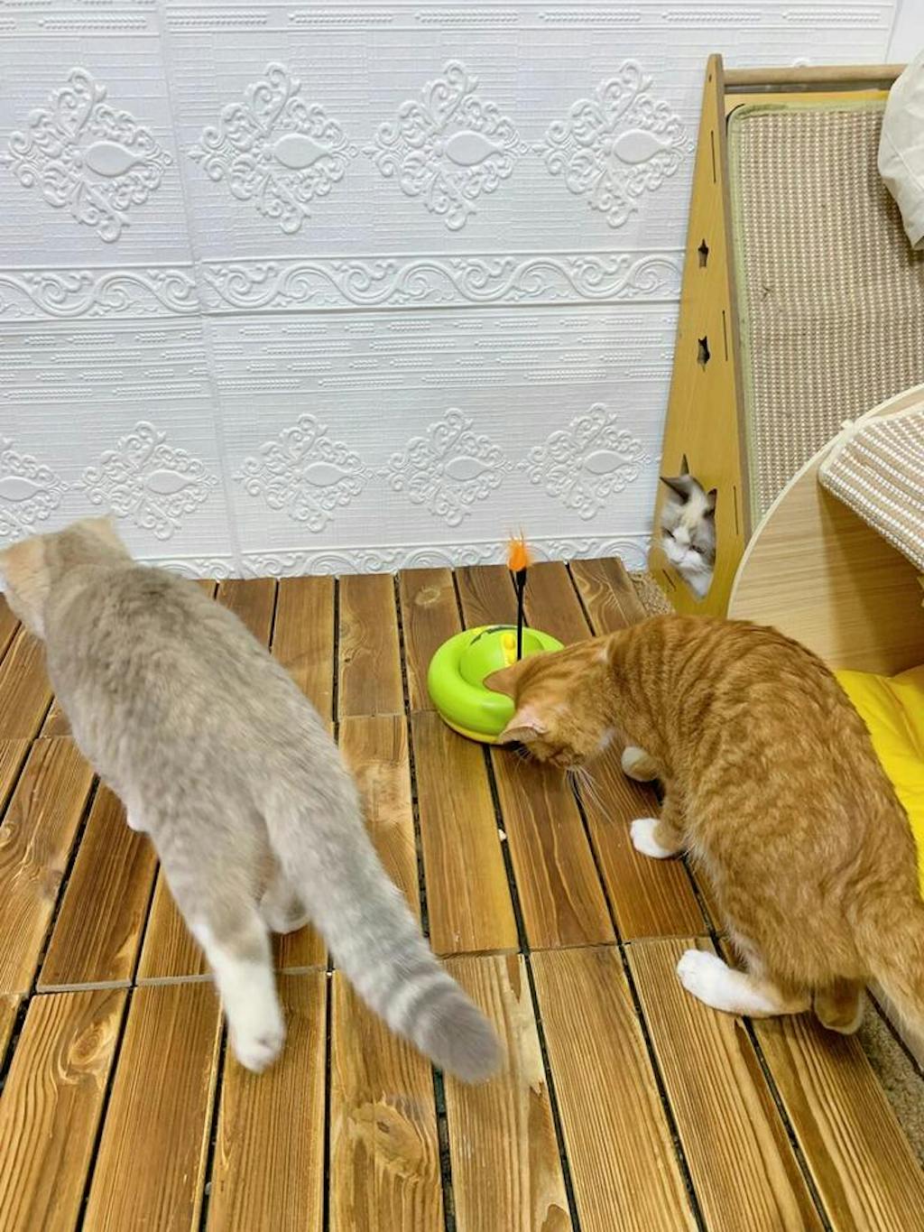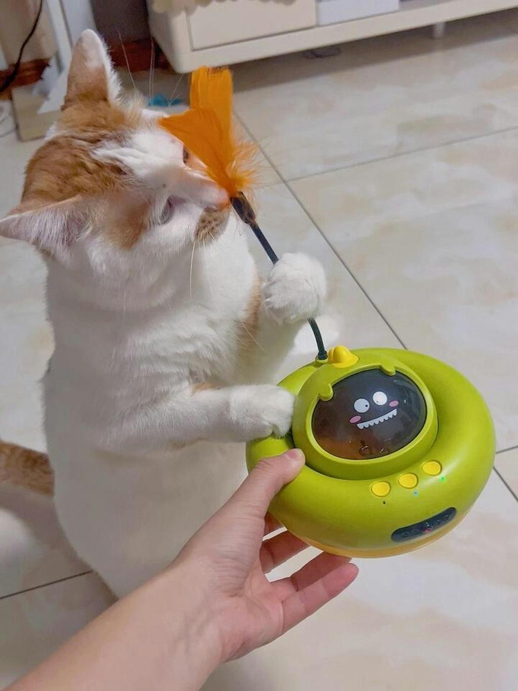 • Smart interactive cat toy featuring removable wheels to prevent hair tangling